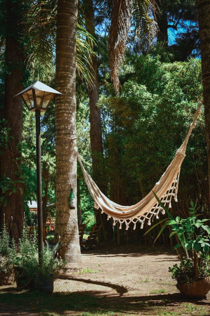 El espacio invita al descanso: hay hamacas paraguayas, reposeras, camastros y juegos de mesa artesanales, además de libros de lectura liviana para dejarse llevar por la calma isleña.